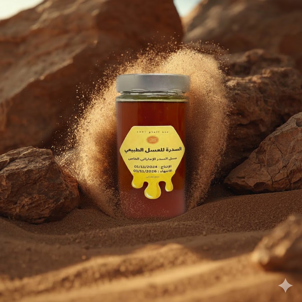 حاصل على جائزة المراكز الأولى في مسابقة أفضل عسل سدر إماراتي في مهرجان الذيد 2024 م،مستخرج من أشجار السدر في الإمارات. يتميز بلونه الذهبي الغني ونكهته الفريدة، ويجمع بين التراث الأصيل والفوائد الصحية، ليعزز المناعة ويحسن الهضم